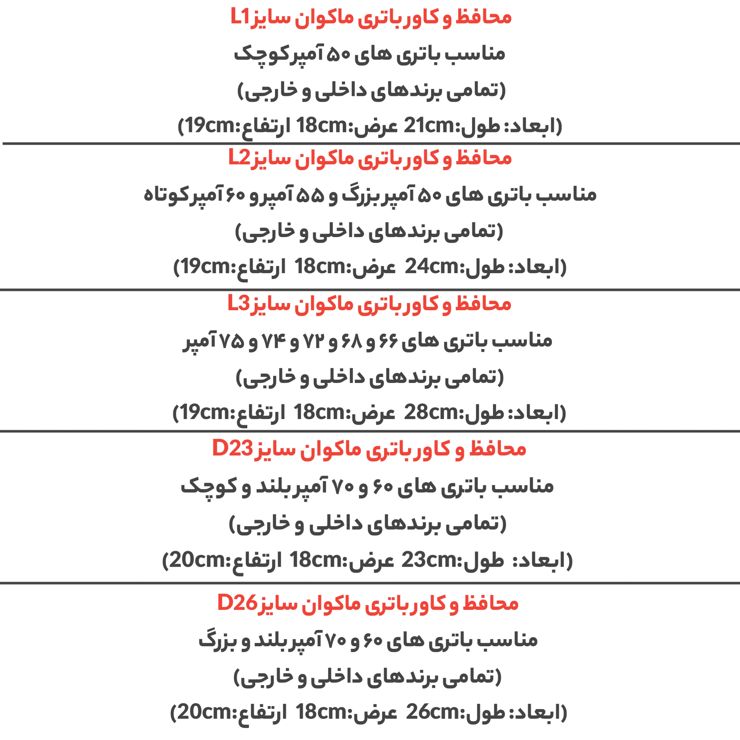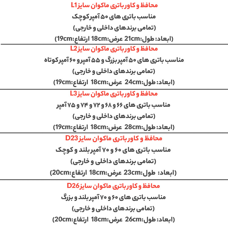 مناسب باتری با ابعاد