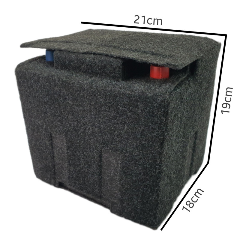 علت بیش از ۷۵ درصد خرابی زودهنگام باتریهای خودرویی، سرما و گرمای زیاد داخل کاپوت خودرو میباشد ، سرما سبب کاهش فعل و انفعالات شیمیایی داخل باتری شده و گرما سبب تبخیر آب باخری می گردد. بسیاری از خودروسازهای بزرگ دنیا مانند بنز و BMW به این موضوع پی برده و باتری خودروهایشان را در صندوق عقب قرار داده اند ، بسیاری دیگر از کمپانی های خودرو سازی نیز برای جلوگیری از خرابی زودهنگام باتری ها ، آن ها را داخل کاور نمدی گذاشته و تا حد زیادی عمر باتری را افزایش داده اند ، متاسفانه خودروسازهای داخلی به این موضوع توجهی نداشته و به همین دلیل عمر باتریها به زیر دو سال کاهش پیدا کرده است ، این در حالی است که حتی بی کیفیت ترین باتریهای بازار هم چیزی حدود ۵ تا ۷ سال عمر مفید دارند. هم اینک شما میتوانید این محافظ باتری را به صورت جداگانه تهیه کرده و برای باتری خودرویتان استفاده نمایید. این محافظ باتری مناسب باتری های 50 آمپر کوچک با ابعاد ( طول : 21cm عرض : 18cm ارتفاع : 19cm ) می باشد .